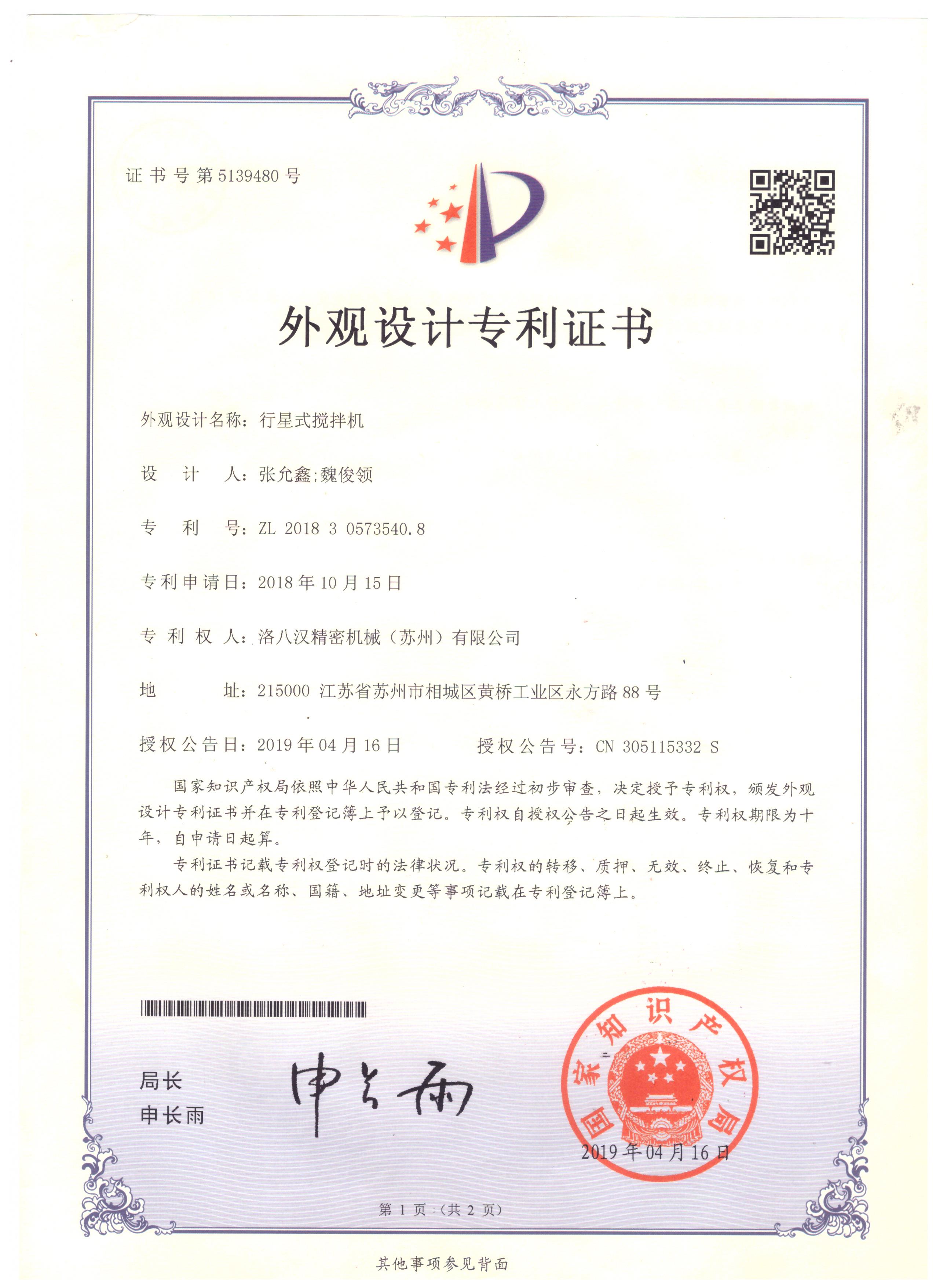 專注行星攪拌機 · 10年榮譽證書國際先進的工藝技術及生產加工設備